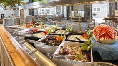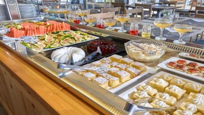 Предлагат се различни заведения за хранене, включително зала за закуска, кафене и бар. Ресторантът за непушачи предлага детски столчета. Изхранването включва полупансион. Континенталната закуска на шведска маса предоставя много вкусни причини да станете и да блеснете. На обяд и вечеря гостите се обслужват сами на бюфет.