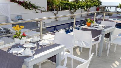 Със стоето чудесно местоположение на плажа, в центъра на село Камари, в блозост до много ресторанти, таверни, барове и магазини, хотел "RK beach" е идеален избор на Вашата почивка. Построен в традиционна цикладска архитектура, предлага на своите гости настаняване в просторни и елегантно декорирани стаи, за да отговори на всички Ваши нужди.