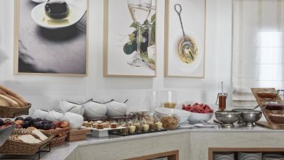 За закуска или вечеря елегантната обстановка създава спокойна атмосфера, съчетана с най-добрите и внимателно подбрани суровини. От средиземноморски рецепти до изкушаващи интернационални ястия и традиционни гръцки специалитети, комплексyt предлага голямо разнообразие от възможности за хранене точно на плажа.
