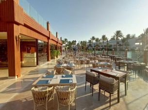 Плаж: Гостите имат достъп до частен пясъчен плаж, заобиколен от корали на първата брегова линия. Чадъри, шезлонги, матраци и хавлии се предоставят безплатно. Крайбрежна алея свързва хотела с плажа, който е дълъг 220 метра. За удобство на почиващите има два понтона и малък пясъчен вход към морето. Безплатен автобус се движи на всеки 15 минути от 08:00 до 20:00 часа. Плажните кабини са на разположение срещу допълнително заплащане.