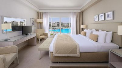 Делукс стая с гледка басейн -43 кв. м, спалня или две отделни легла, душ, тераса/балкон, сешоар, сейф . Максимално настаняване - 2-ма възрастни+1 дете.