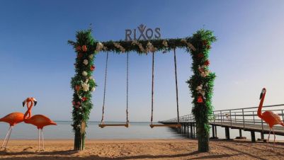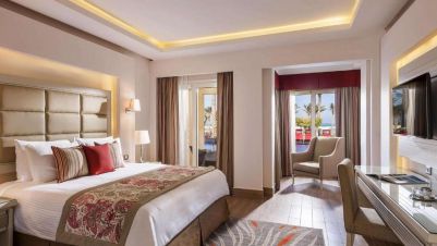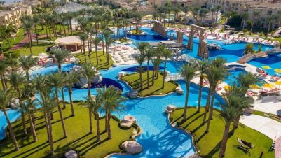 Този луксозен 5-звезден хотелски комплекс в Шарм ел-Шейх е разположен сред палмови дървета на брега на морето.