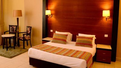 - Хотелът предлага различни категории стаи, разположени в основната сграда и странични корпуси сред градината