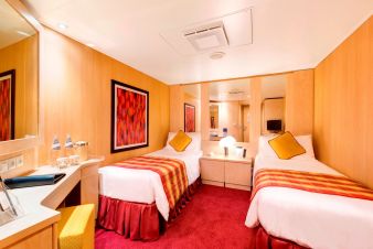 Суити, каюти с балкон, каюти с прозорец /не се отваря/, вътрешни каюти, каюти за инвалиди. Всички със сателитна ТВ, телефон, сейф, сешоар, климатик, минибар, интернет и рум сървиз срещу заплащане.
