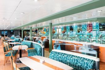 Два основни ресторанта Марко Поло и Ла Пергола и бюфет, включени в цената на круиза, ала карт Сърф и търф ресторант, грил, пица и паста бар.
