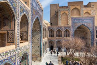 След това ще посетите внушителния площад "Регистан", включващ три величествени медресета (ислямски училища), които са създадени под покровителството на Тимур. Следва посещение на джамията "Биби Ханъм" – най-голямата в света за времето си. Тя се намира до ориенталския пазар "Сияб" – шумен и поразяващ сетивата. Тук ще намерите традиционни стоки и местни деликатеси. Продължавате към некропола "Шахи Зинда", исторически погребален комплекс, поръчан от Тимур за семейството му и най-близките довереници. Този комплекс често е наричан "улицата на мъртвите" и смятан за едно от най-светите места за поклонение на мюсюлманите.