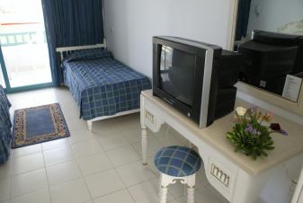 В стаите: Хотелът разполага с 263 Standard Room (12-18 кв.м), разпределени в основна двуетажна сграда (без асансьор). Всички стаи са оборудвани с климатик, телевизор, баня с душ/вана, минибар (платен, на запитване), балкон или тераса. Почистване на стаите - всеки ден.