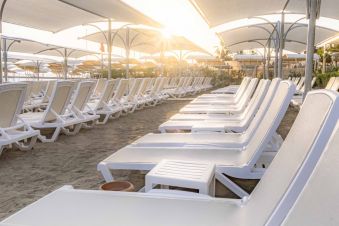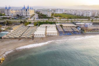 Плаж: Собствен пясъчно-чакълест плаж, до който се стига посредством подлез под главния път (свързващ Анталия и Алания). На плажа и басейна - чадъри, шезлонти, матраци и плажни хавлии - безплатно. Бар на плажа - безплатно.