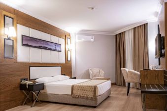 В стаите: Хотелът се състои от две основни 5-етажни свързани сгради и пет 3-етажни корпуса Villa. Всички стаи са оборудвани с климатик, сателитна телевизия, телефон с директно избиране, баня с вана, сешоар, минибар (разхладителни напитки - при настаняването, вода - ежедневно), сейф (безплатно), балкон, под – ламиниран паркет.