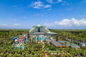 На територията на хотела: Хотелът предлага безплатен Wi-Fi във фоайето. Предлагат се и конферентни зали и амфитеатър под наем. Гостите могат да се възползват от медицинските услуги на хотела, обмяна на валута, паркинг, коли под наем, салон за красота, магазини и пералня. Освен това има открити и закрити басейни с различни размери, включително басейн с пързалки. Основният ресторант "Делфин" е отворен от 7:00 до 21:00 часа. Ресторантите а ла карт предлагат разнообразие от кухни, включително турска, италианска, японска, китайска, мексиканска, гръцка и рибна кухня. Те са отворени от 19:00 до 21:30 часа. Хотелът разполага още с кафене Avanti, лоби бар, бар Joia, бар край басейна и снек бар Palm. Диско барът е отворен от 23:00 до 02:00 часа.