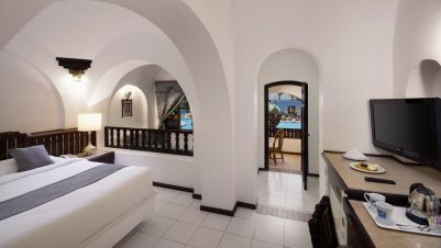 В стаите: Хотелът разполага с общо 295 стаи, от които 109 Standard Rooms, 1 Deluxe Suite, 100 Sea View Rooms, 85 Pool View rooms, 8 Connecting Rooms. Всички стаи са оборудвани с климатик, телевизор, телефон, баня с душ/вана, сешоар, минибар (зарежда се всеки ден с минерална вода и софт напитки), сет за кафе/чай, сейф (безплатен), балкон. Почистване на стаите и смяна на кърпите - всеки ден, смяна на спално бельо – 3 пъти в седмицата.