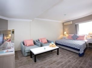 Разположение: Намира се на 70 км от летище Измир, на 500 метра от центъра на Кушадасъ, в близост до яхтеното пристанище, на 200 метра от плажа. Реновиран през 2014 г. Хотелът е само за възрастни и не се допуска настаняване на деца под 16г.