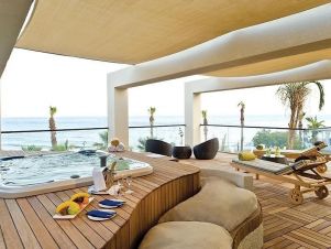 Terraces Suites са с площ 70 кв. м. с голяма тераса и джакузи. В стаите има двойно легло и разтегателен диван. Модерни мраморни бани, оборудвани с турска баня и душ, за да можете да се отпуснете.