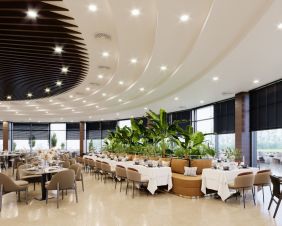Oсновен ресторант, 2 а-ла-карт ресторантa: рибен и италиански (с предварителна резервация, едно безплатно посещение при мин. 5 нощувки), снек бар, 3 бара, сладкарница, открит басейн, закрит отопляем басейн (в зависимост от сезонните условия), водни пързалки, СПА център, фитнес, конферентна зала, магазини, паркинг.