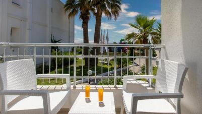 В стаите: Хотелът разполага с общо 176 стаи разпределени в една основна сграда и 22 двуетажни блокчета. Всички стаи са оборудвани с климатик, телевизор, телефон, баня с душ, безплатен WiFi, сешоар, мини бар, сейф, балкон или тераса.