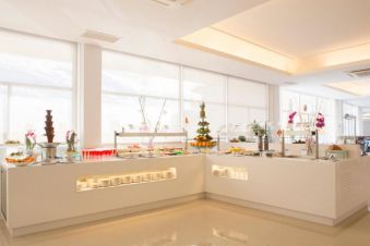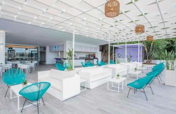 На територията на хотела: Бюфет-ресторант с интернационална и средиземноморска кухня. Лоби бар и бар до басейна, обширна тераса-солариум с чадъри и шезлонги и прекрасни гледки към пристанището на Палма и плажа на Магалуф, фитнес зала.