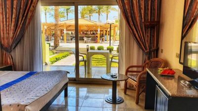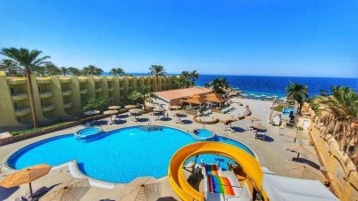Palm Beach Resort 4* е обзаведен в модерен стил, а обстановката и атмосферата са традиционни за Египет. Хотелът разполага с прекрасни гледки към Червено море, с 2 басейна, собствен пясъчен плаж и клуб по гмуркане. Гостите на хотела имат на разположение още: ресторант с международна кухня, бар с напитки и леки закуски, релаксиращи масажи, сауна и фитнес, екип от аниматори, организиращи различни занимания и игри през целия ден. Центърът по гмуркане - The Caves, предлага различен тип водни спортове, като гмуркане, шнорхелинг и уиндсърф.