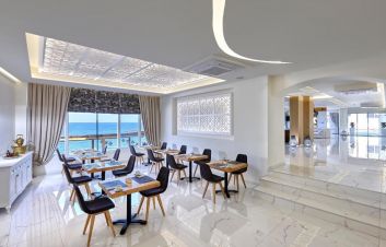 На територията: Голям открит басейн, турска баня и собствен плаж който е точно на брега на морето с шезлонги и чадари. Има 2 вида ресторанти и 2 бара. Хотелът също разполага с спа център който предлага различни уелнес пруцедури. Хотелът разполага с всякакви видове стаи, зависейки от стандарта който желаете. Стандартната стая разполага с климатик, тераса, кърпи и безплатен интенрет.