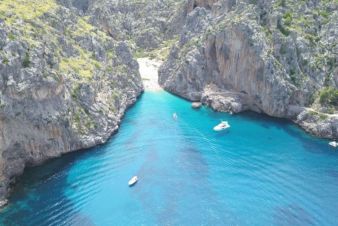 Целодневна екскурзия до Сиера де Трамунтана по море и по суша. Обиколката ще започне с кратко пътешествие на борда на ретро железница, който ще Ви отведе до град Солер, в сърцето на „Долината на портокалите“ или „Долината на златото.“ Ще се насладите на типичната местна атмосфера и панорамната гледка към пристанището на един от най-емблематичните градове на острова. Пътешествието ще продължи по море, за да Ви отведе до Са Калобра, където ще посетите два от най-уникалните плажове на Майорка, сгушени сред стръмни скали и разделени от Торрент де Парейс (речно дефиле). Са Калобра е доста труден за достигане участък, но пейзажът около него е, меко казано, спиращ дъха! Панорамната обиколка ще продължи с автобус, за да се насладите на красотата на планината, минавайки покрай живописните села Люк, Каймари, Селва и Инка.
